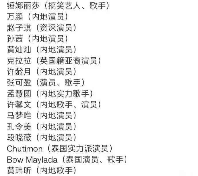 目前流传的参赛名单主要集中以下30余位艺人,涵盖多元领域