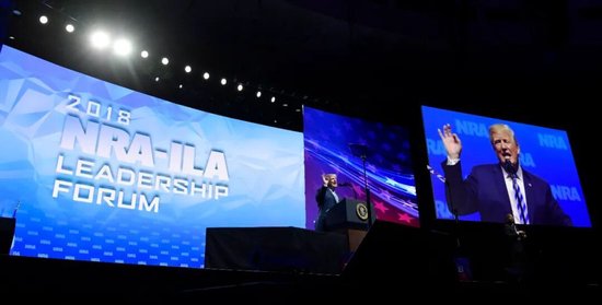2018年5月4日,美国总统特朗普在得克萨斯州达拉斯市举行的美国全国步枪协会年会上讲话。特朗普在年会上重申,支持公民拥有枪支的权利。 新华社/美联