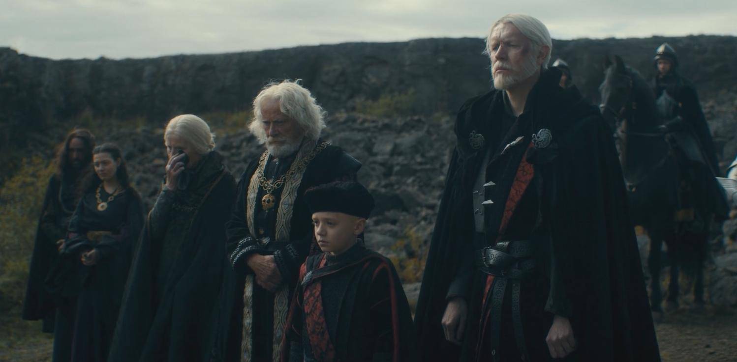 莱昂诺·拜拉席恩说,邓肯杀龙,其实是帮了王国一个大忙。看得出来,莱昂诺·拜拉席恩和少年伊耿一样,打心底里讨厌坦格利安。编剧也在这里埋下了未来的冲突。莱昂诺·拜拉席恩还说,真正为邓肯拼命的是他,而贝勒什么风险都没冒——因为他打的是自己亲兄弟、亲侄子,还有不敢伤他的白袍御林铁卫。他确实等于零风险。说实话,这一点还真没说错。
